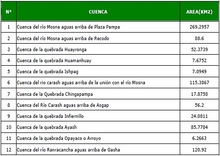 Asimismo en la quebrada del río Carash, la laguna con posibilidades de represamiento es: Shahuanga.